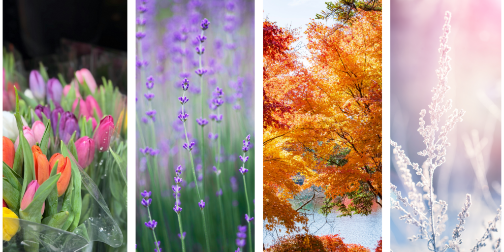 Du vil finde både lyse, mørke og mere livlige farver i din palette, uanset hvilken årstid du er. I dette blogindlæg har jeg samlet ideer til hvordan du kan bevæge dig gennem året – hele tiden i din palette.